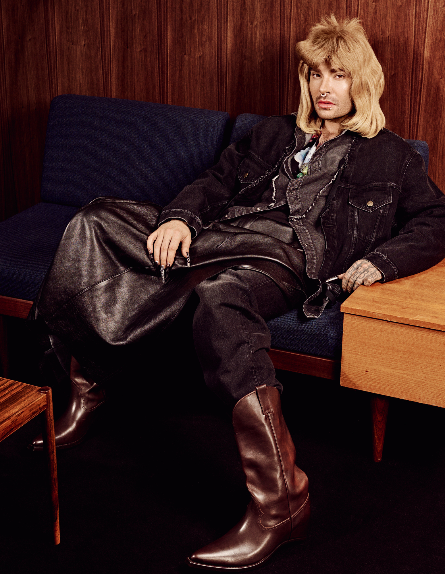 Bill Kaulitz sitzend, mit frisuren die sitzen.