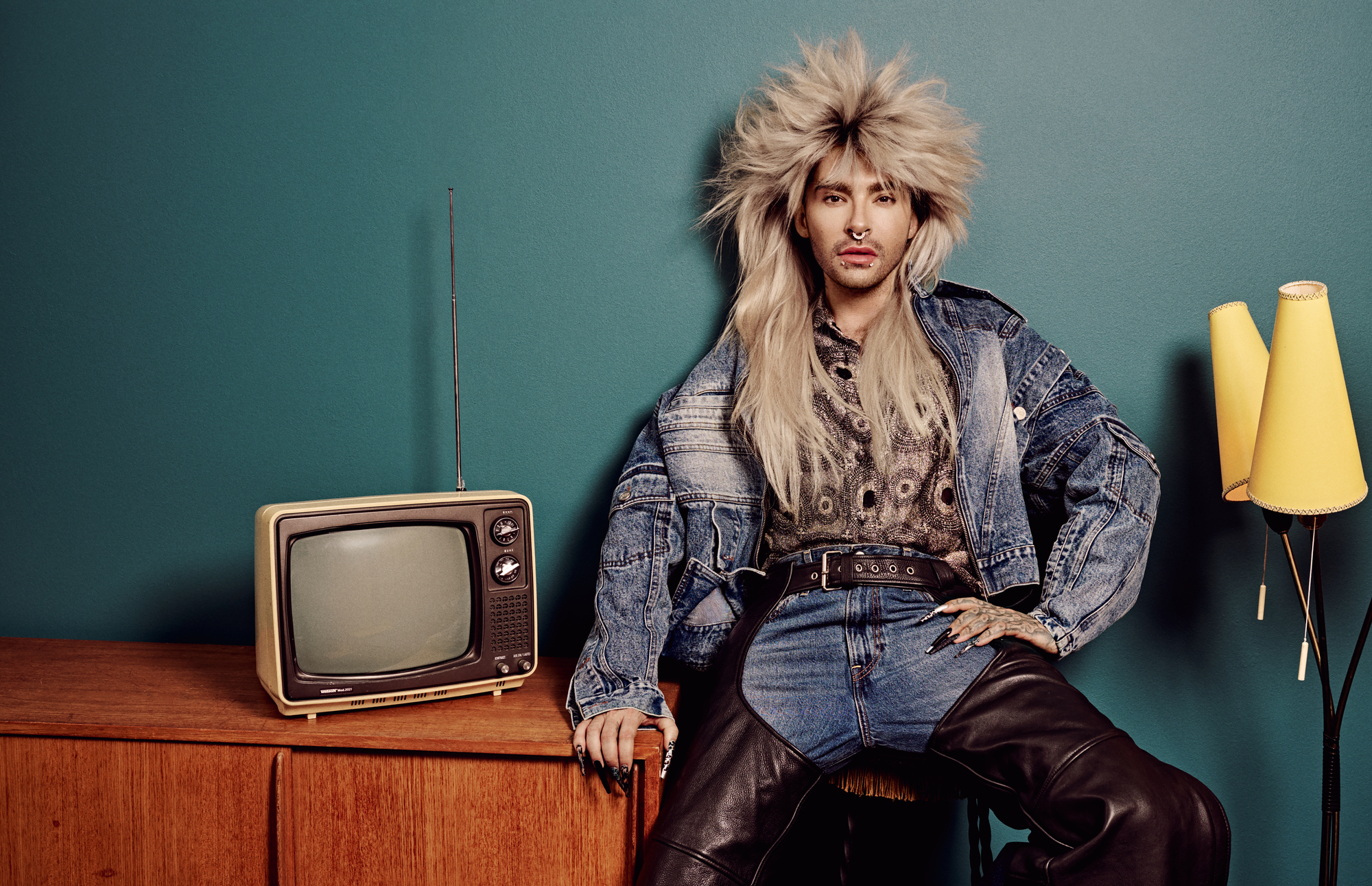 Bill Kaulitz sitzend, mit frisuren die sitzen.